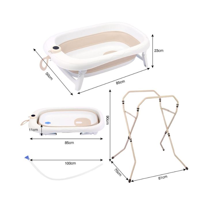 אמבטיית סיליקון מתקפלת ענקית עם מעמד מיניגו – צבע בז׳
