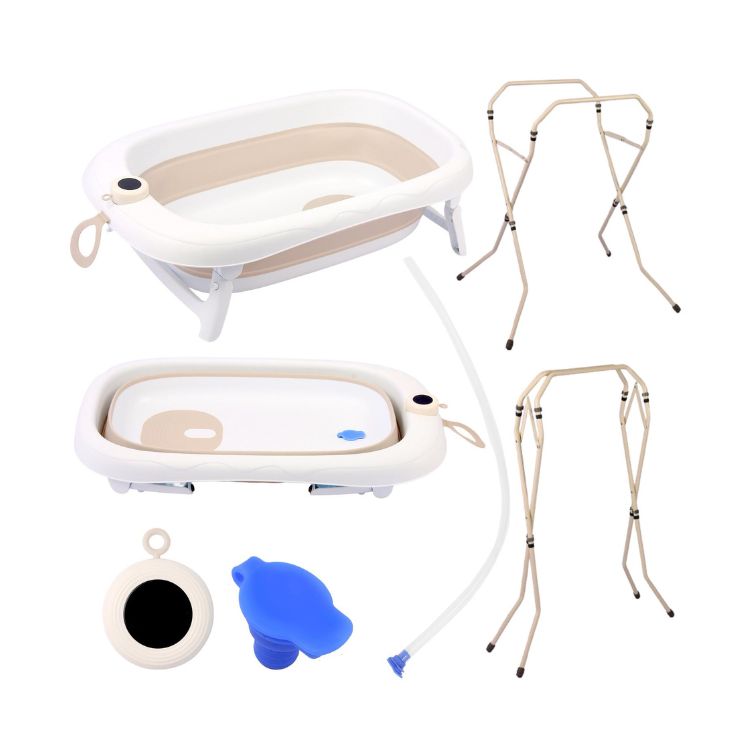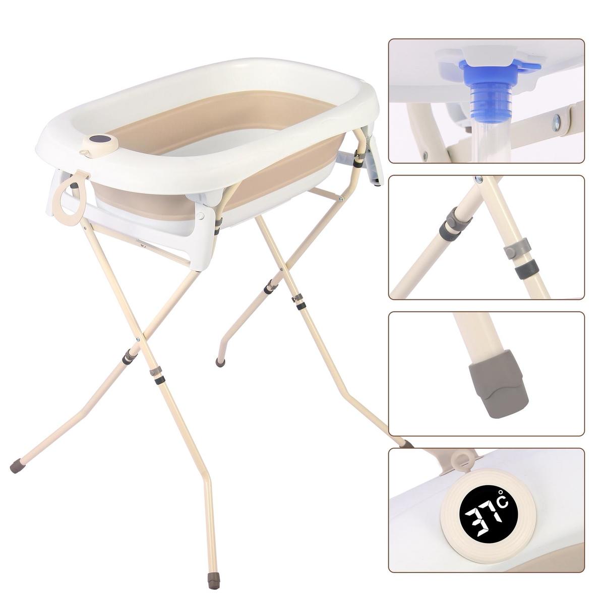 אמבטיה מתקפלת מסיליקון מיניגו ענקית עם מעמד בטיחותי ומד חום דיגיטלי מגנטי- פתרון פרקטי לרחצה מגיל לידה ועד 5 שנים. העיצוב מתקפל לחיסכון במקום, כולל צינורית ניקוז ותמיכת רגליים נגד החלקה; מעמד עמיד המחזק את היציבות ועד 30 ק"ג.