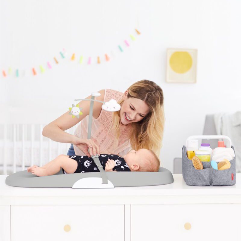 משטח החתלה מסיליקון עם חגורות ומובייל - אפור