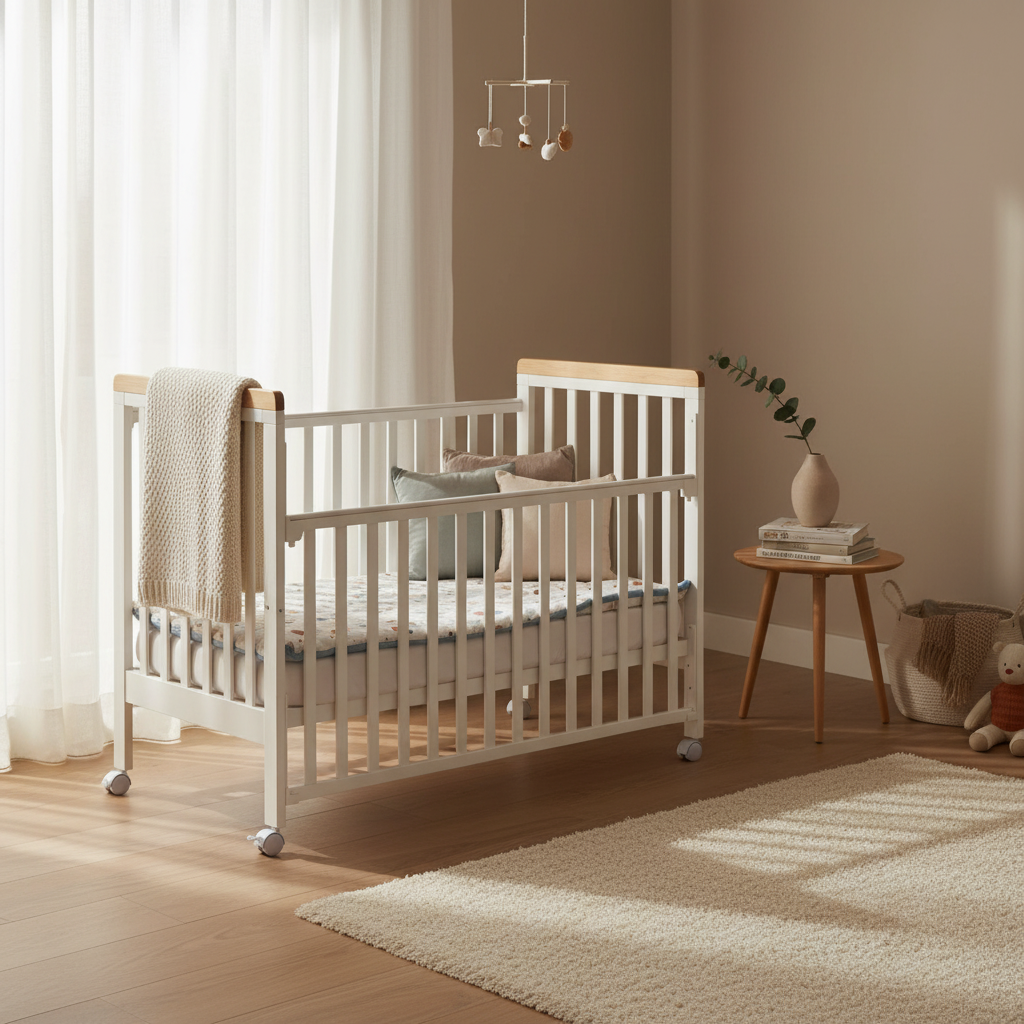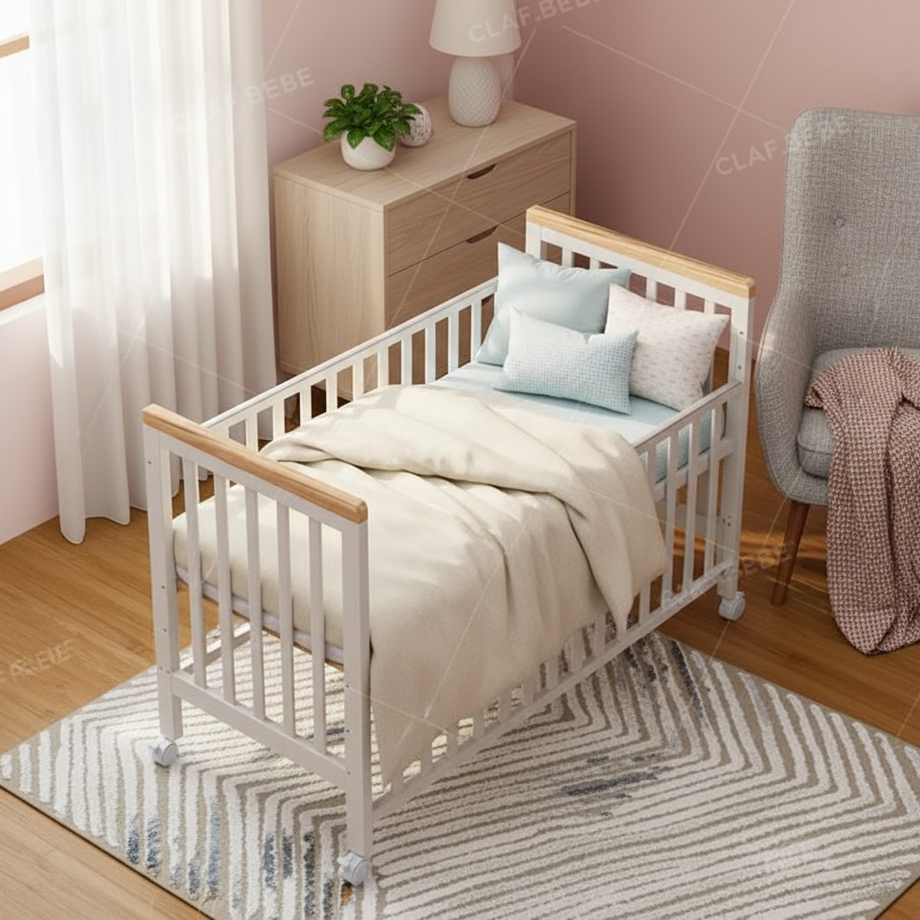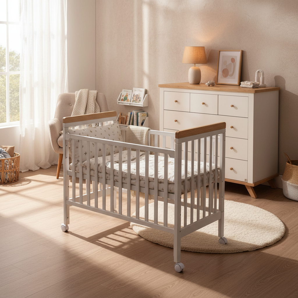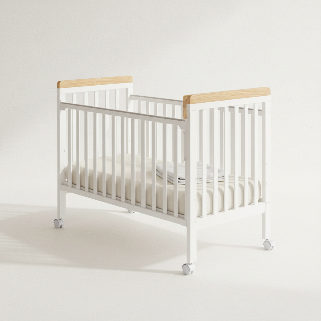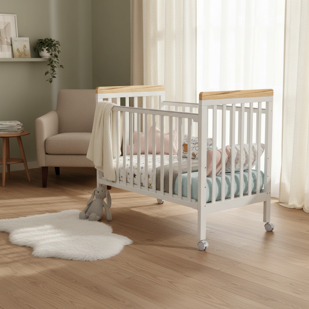 מיטת תינוק מיניגו מעץ מלא משלבת עיצוב נקי, יציבות ובטיחות. מעקה צד עם מנגנון נסתר ו-4 מצבי גובה מאפשרים גישה נוחה והתאמה לאורך זמן. צבע עמיד ולא רעיל וגלגלים איכותיים מקלים