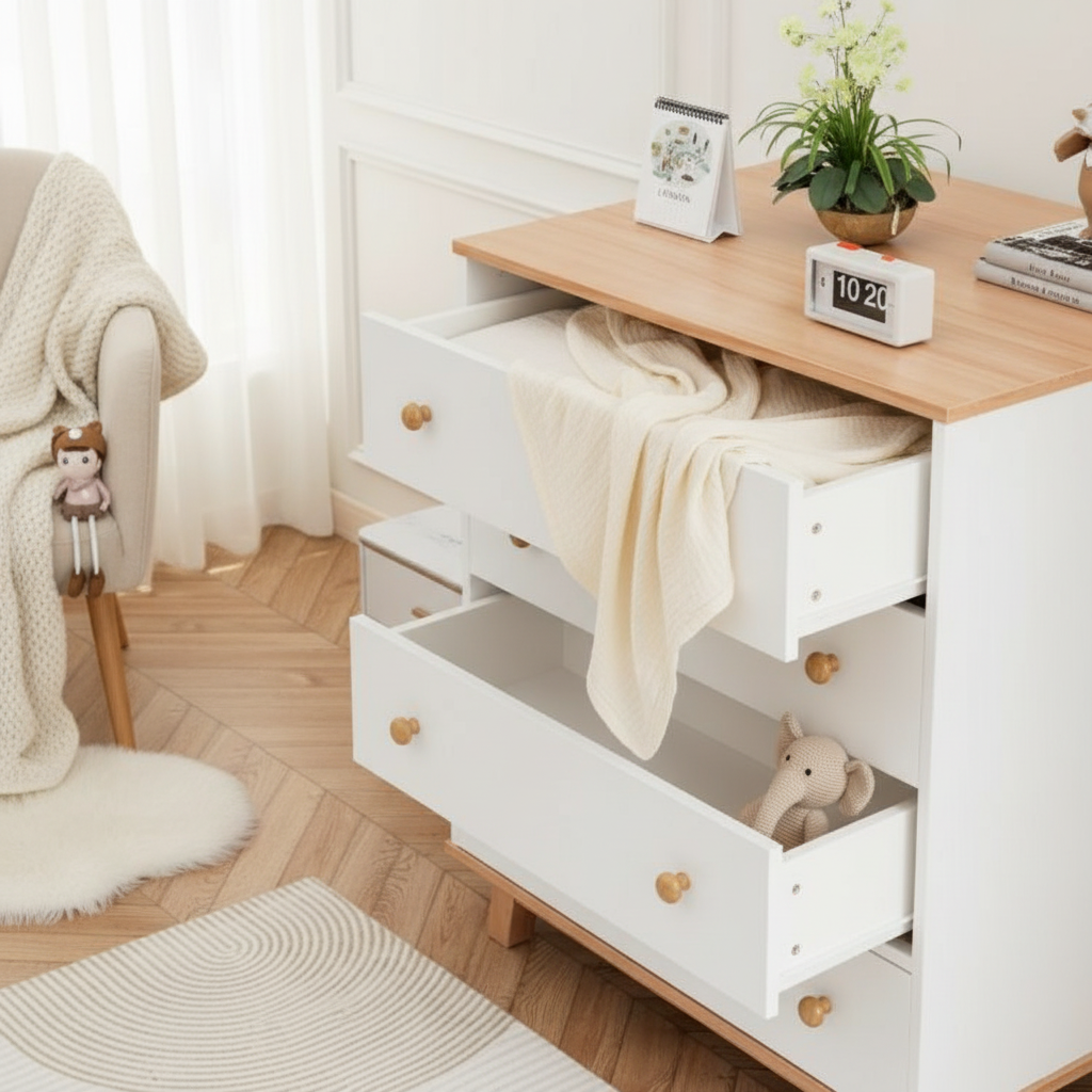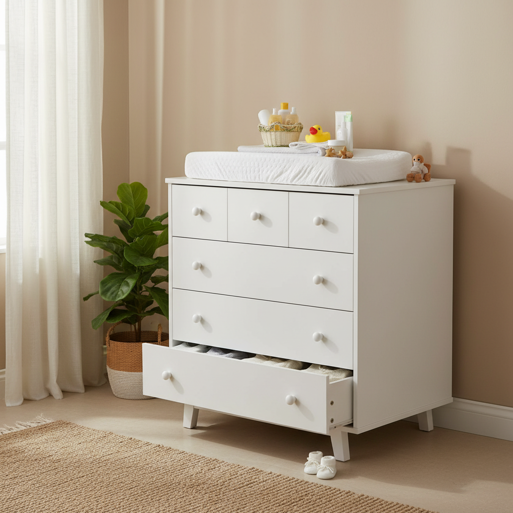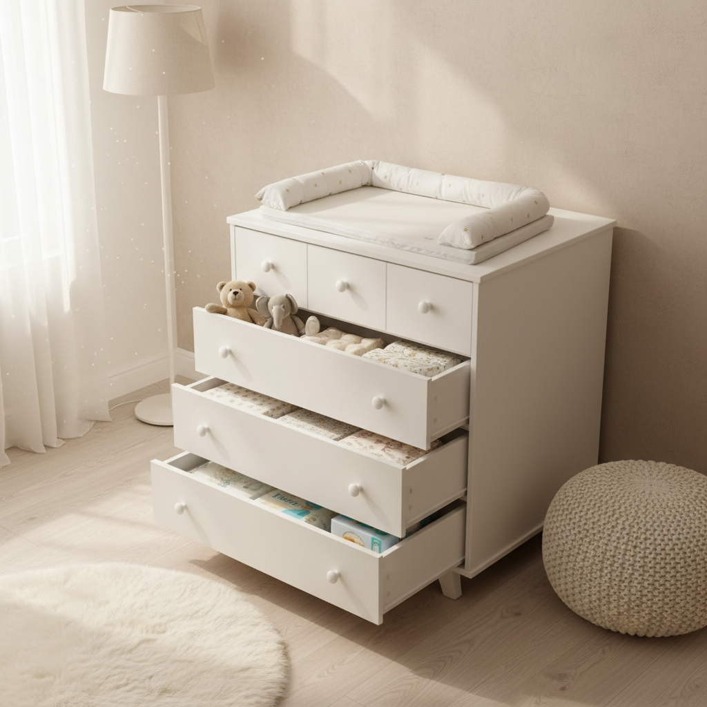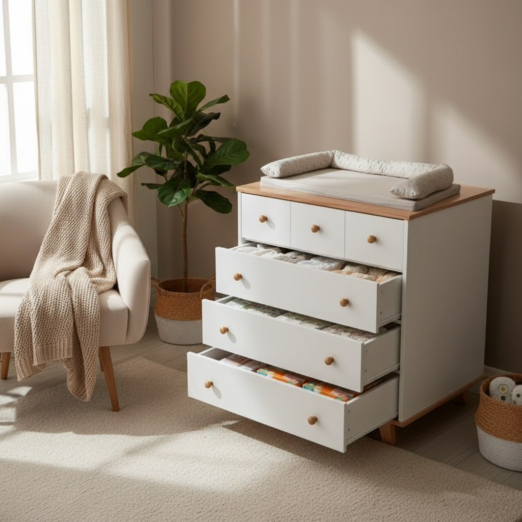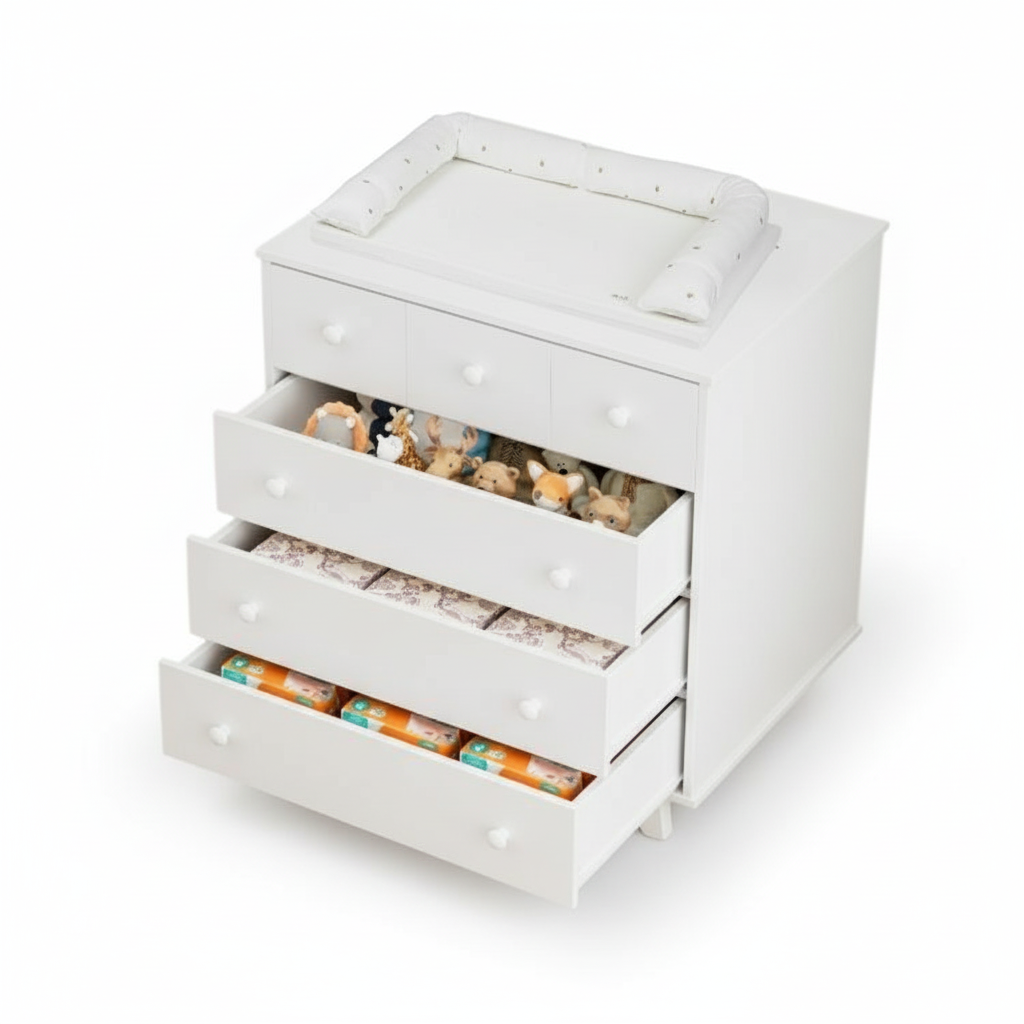 - אחסון מסודר עם 6 מגירות לבגדי תינוק וחיתולים