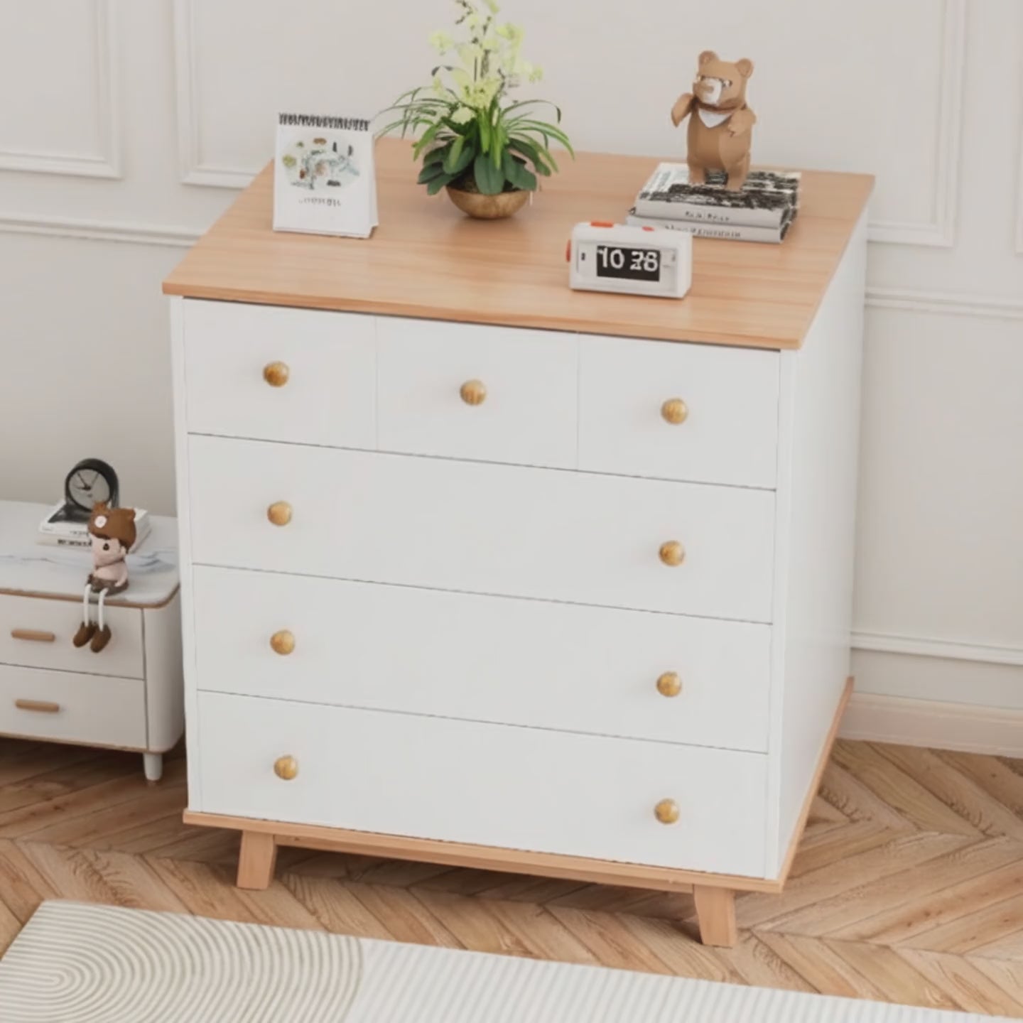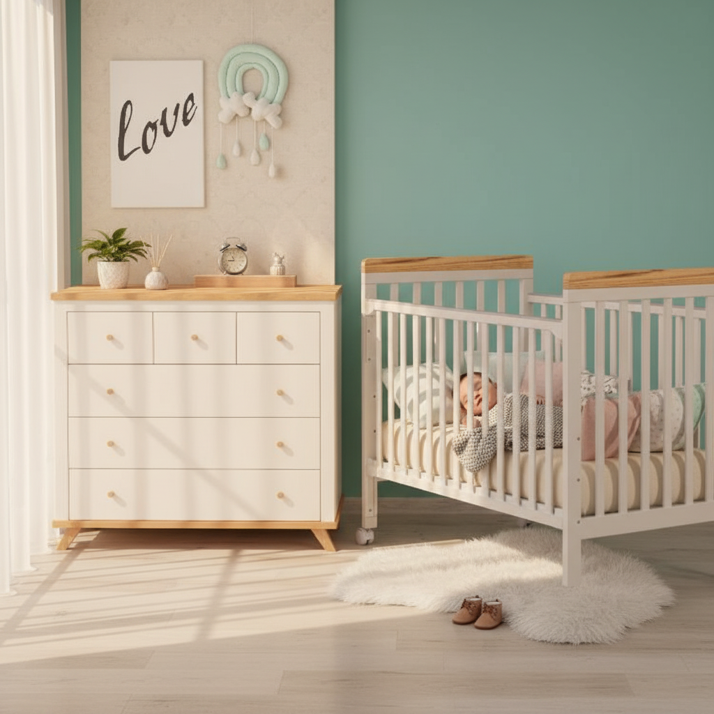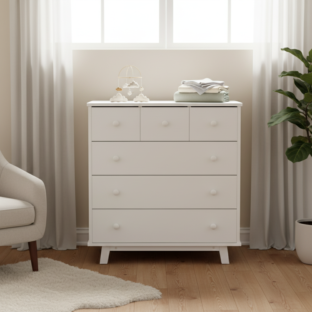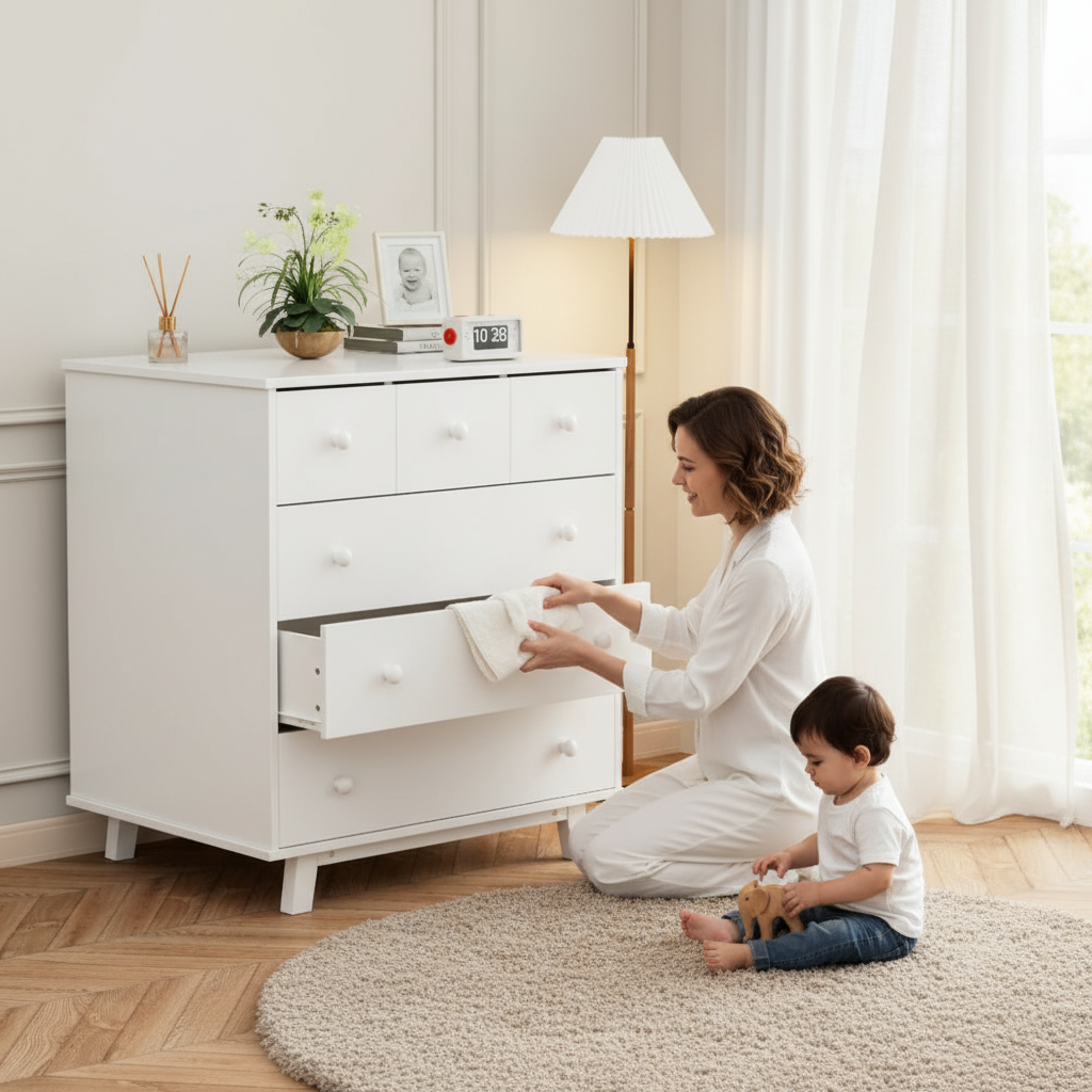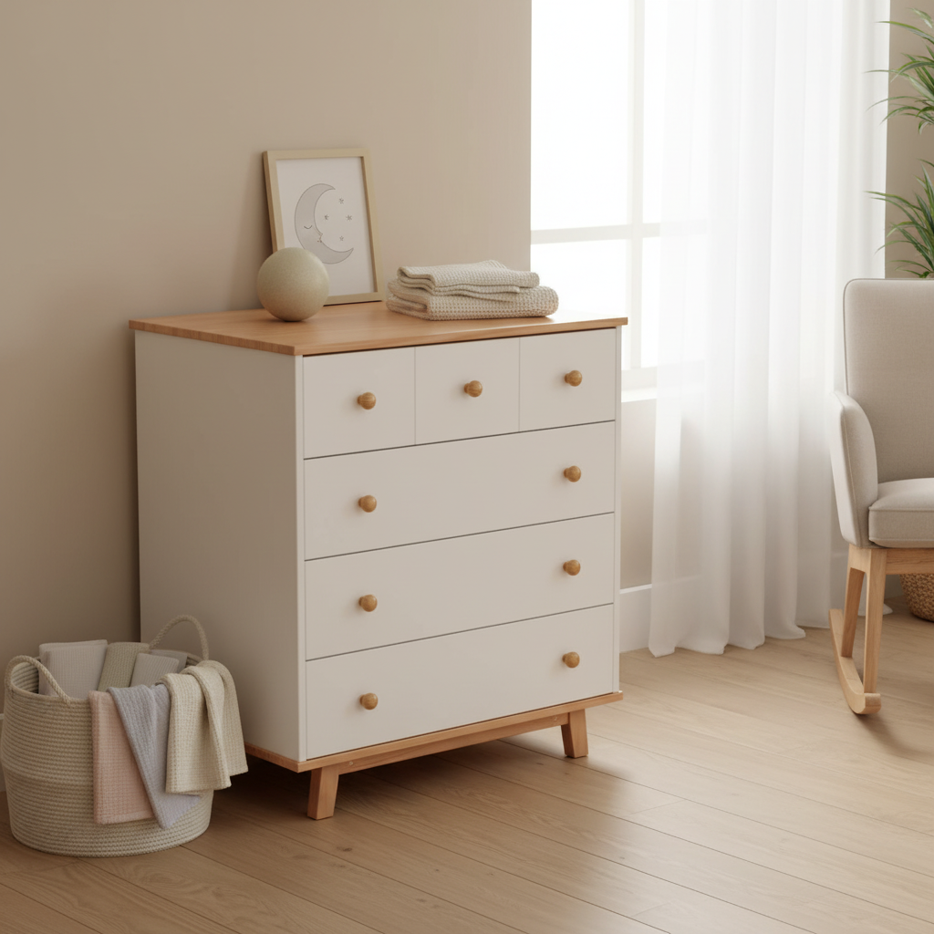 - אחסון מסודר עם 6 מגירות לבגדי תינוק וחיתולים