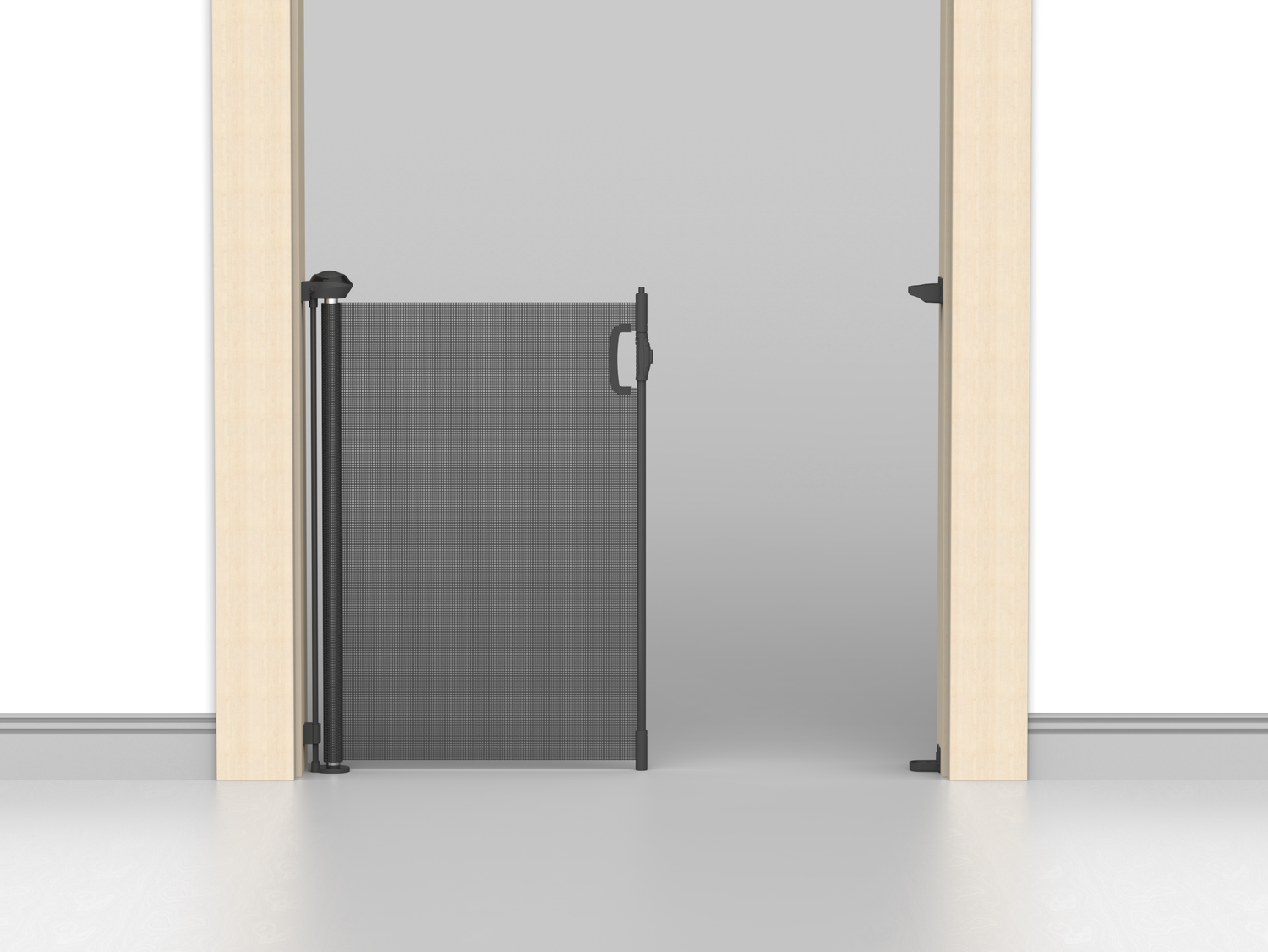 השער נגלל בקלות, כמעט ואינו תופס מקום, ומאפשר שליטה מלאה על המעבר – אידיאלי לחסימת גישה למדרגות, למרפסות, למטבח או לכל אזור שתרצו לשמור מוגן.