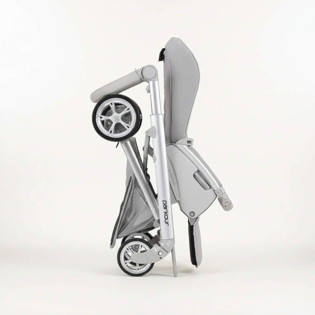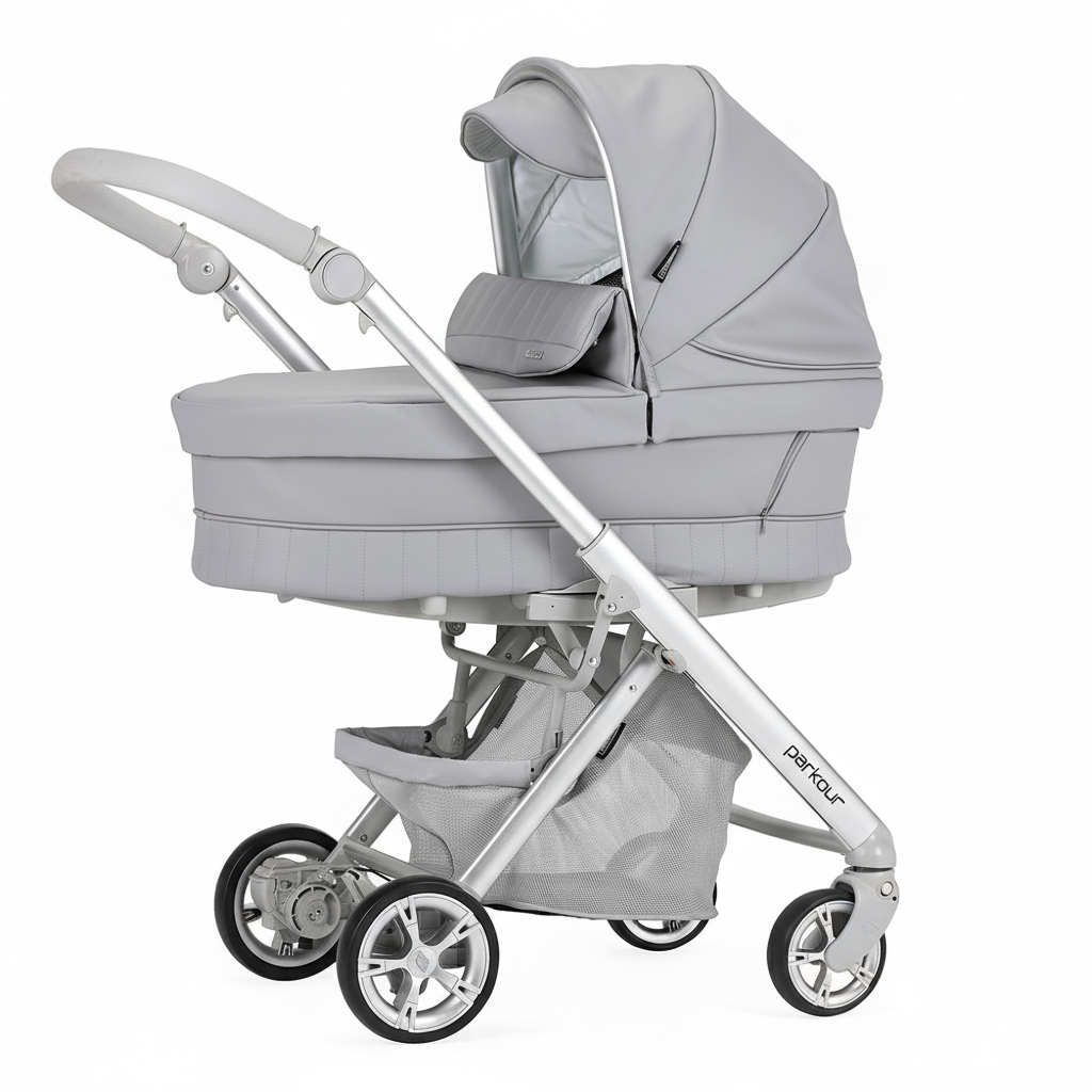 בבהקאר פארקור 051 – אפור דמוי עור | עגלת תינוק