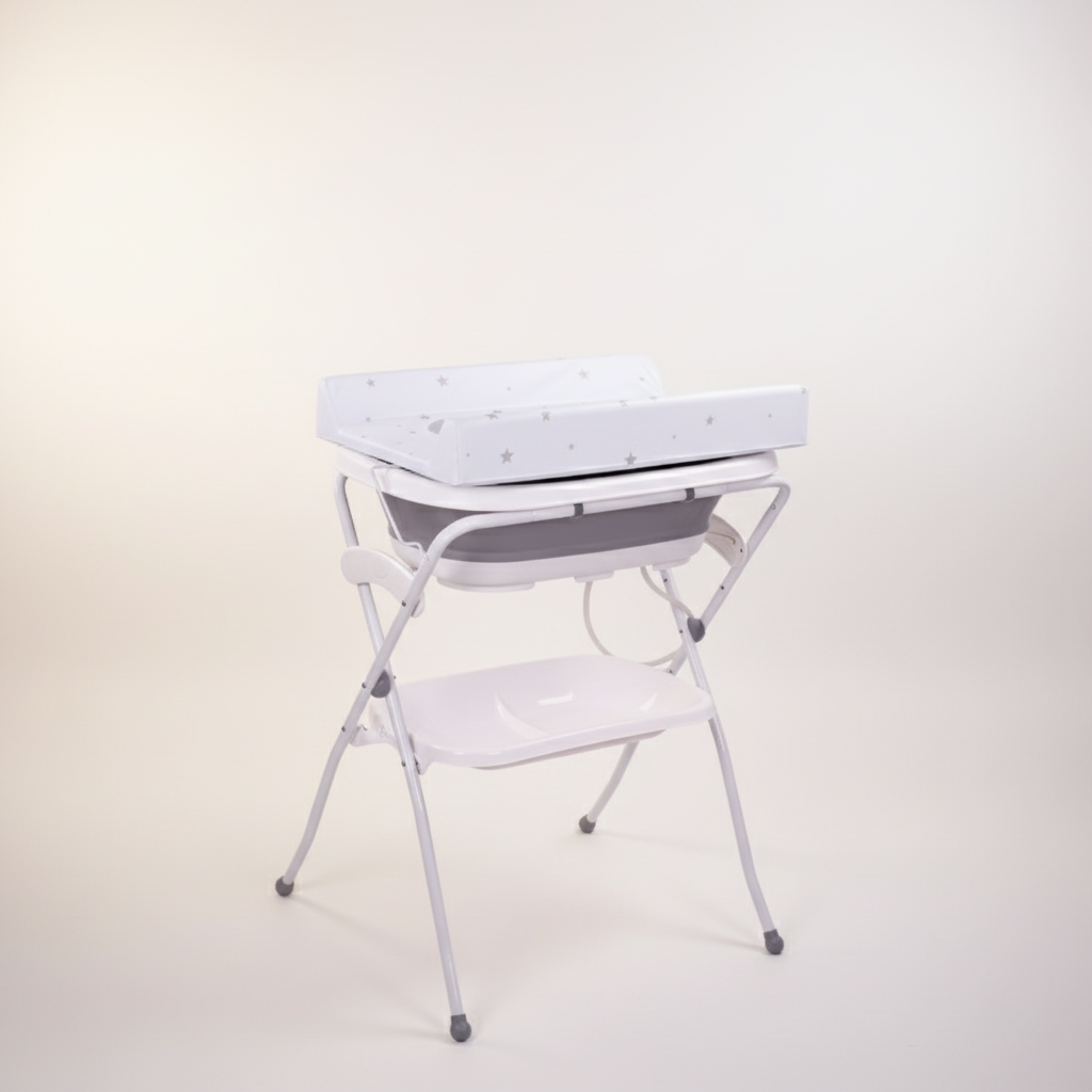 אמבטיית סיליקון מתקפלת עם מעמד ומשטח החתלה – אפור | אמבטיה לתינוק