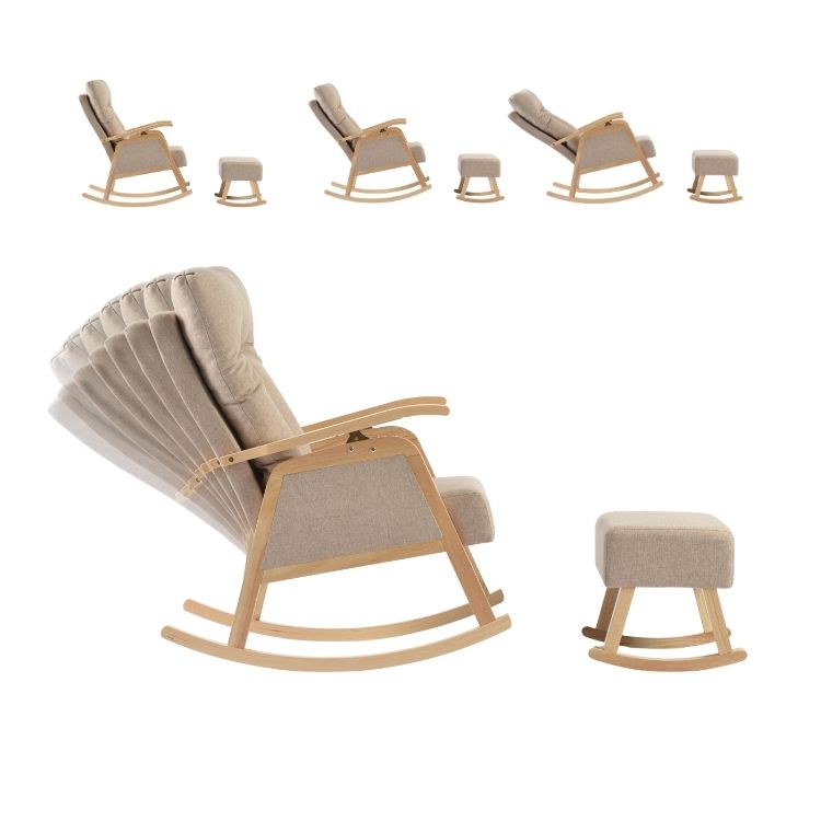 כורסאת הנקה נדנדה בז’ עם גב מתכוונן והדום מתנדנד - בז׳