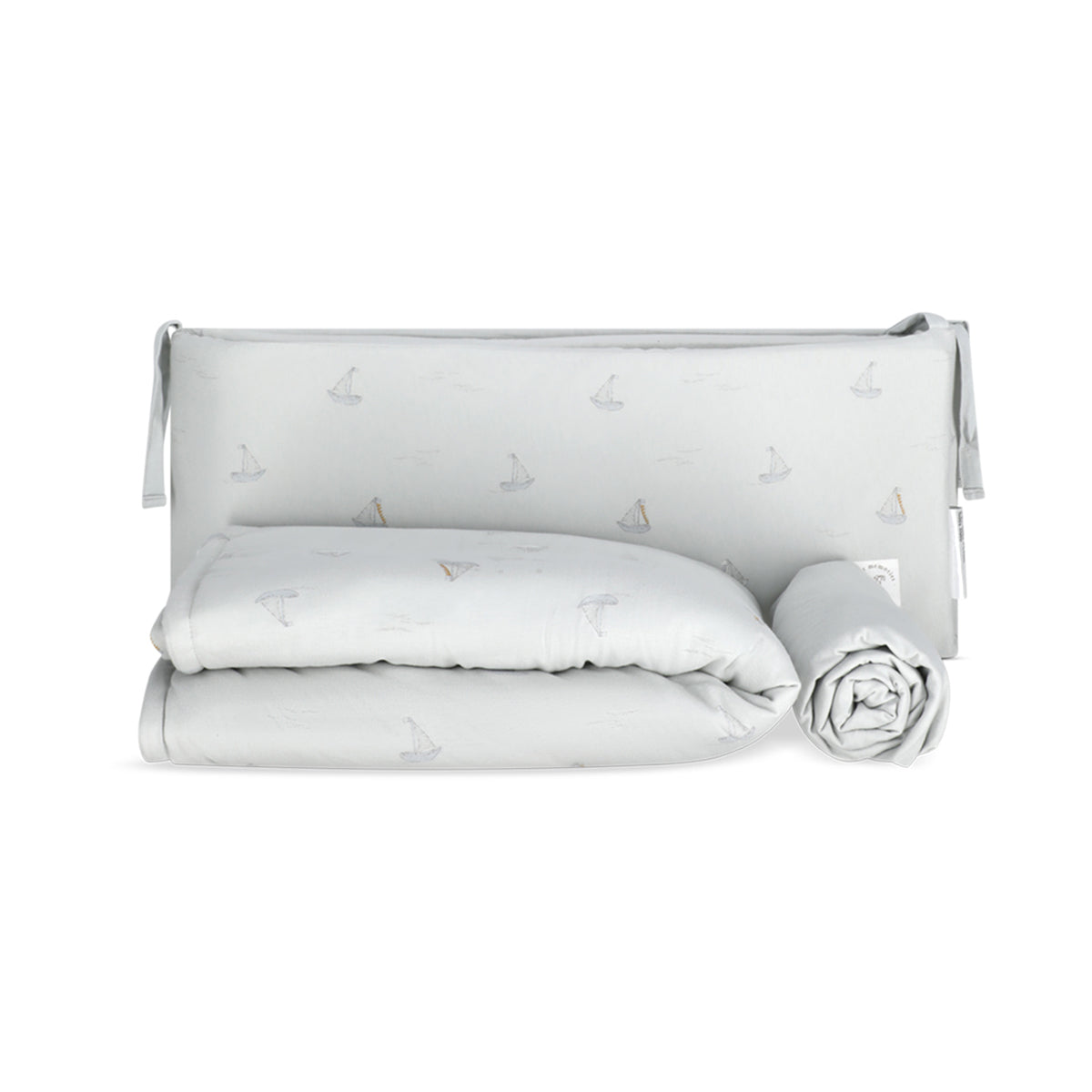 סט מצעים למיטת תינוק מיננה תכלת עם הדפס סירות