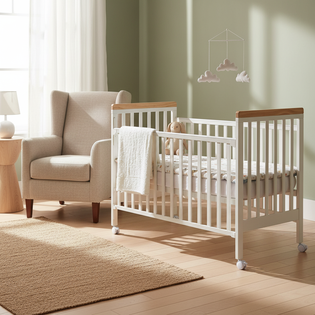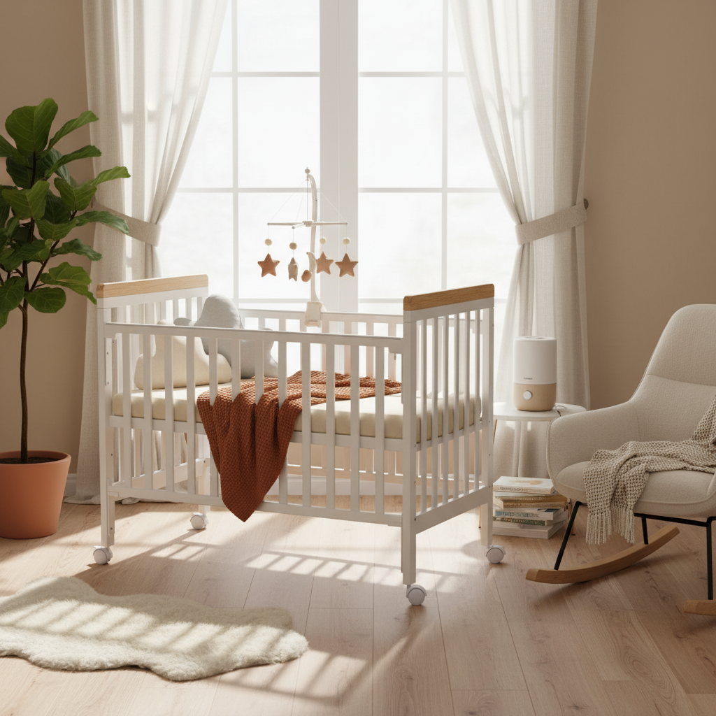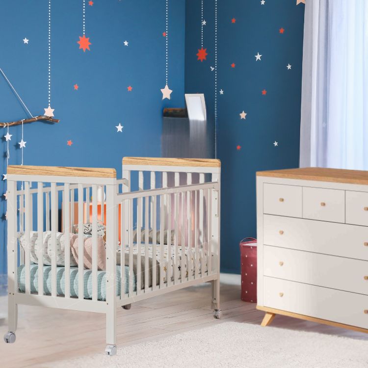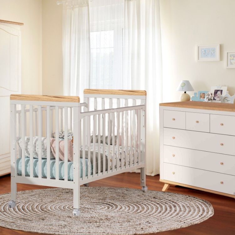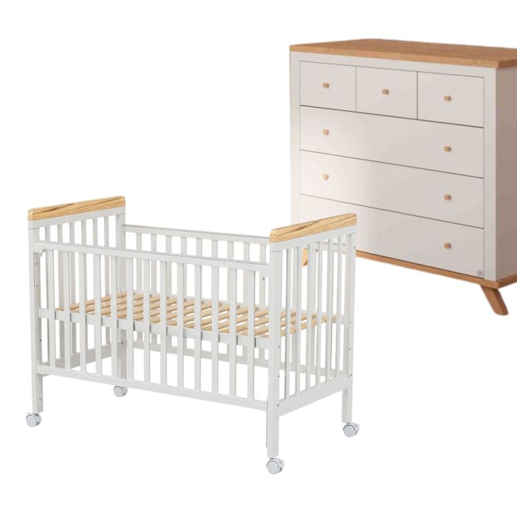 מיניגו – מיטת תינוק ושידת החתלה לבן שילוב עץ | חדר תינוק