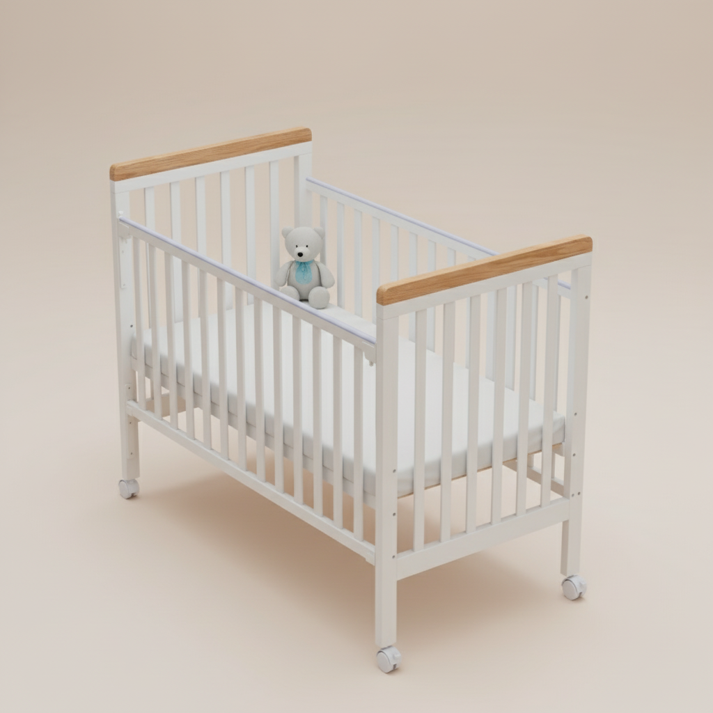 - המיטה מגיעה בצבע לבן עם שילוב דמוי עץ ומגינים מיוחדים מסיליקיון לנשיכות